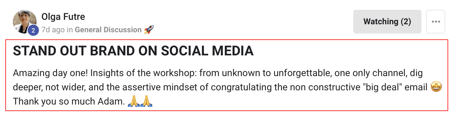 Now I teach others how to grow their businesses using the branding strategies I developed, and you can discover them in this new 3-day, 90 minutes per day, Stand Out Brand on Social Media workshop.
